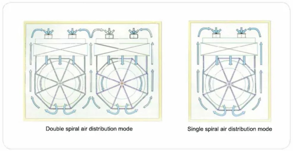 Пища находится в непосредственном контакте с нижней поверхностью металлической пластины, а другая поверхность пищи подвергается конвекционной теплопередаче холодом, создаваемым вентилятором. Режим теплопередачи - прямой контакт и двойная теплопередача холодным воздухом, также известная как «двойная электрическая форма быстрой заморозки».